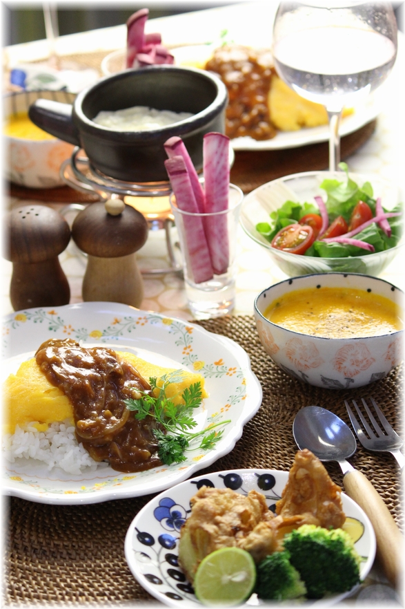デミグラスオムライス。と 献立。