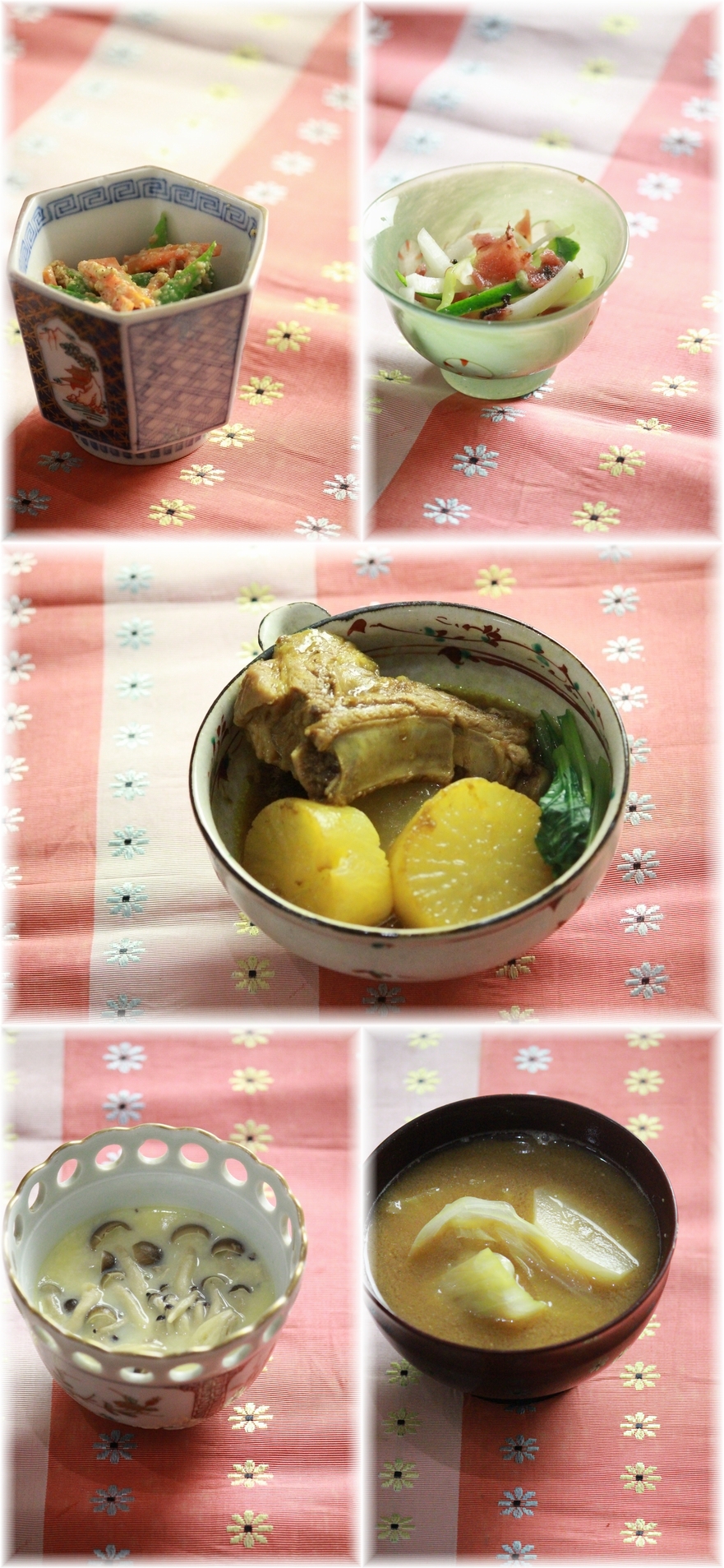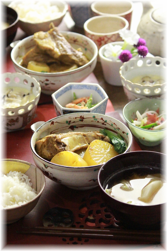 スペアリブ大根のカレー醤油煮。 と 献立。