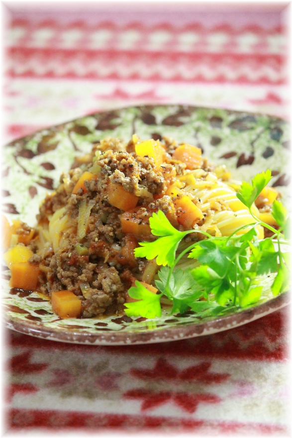 ***和洋ミートソースパスタ。 2人分