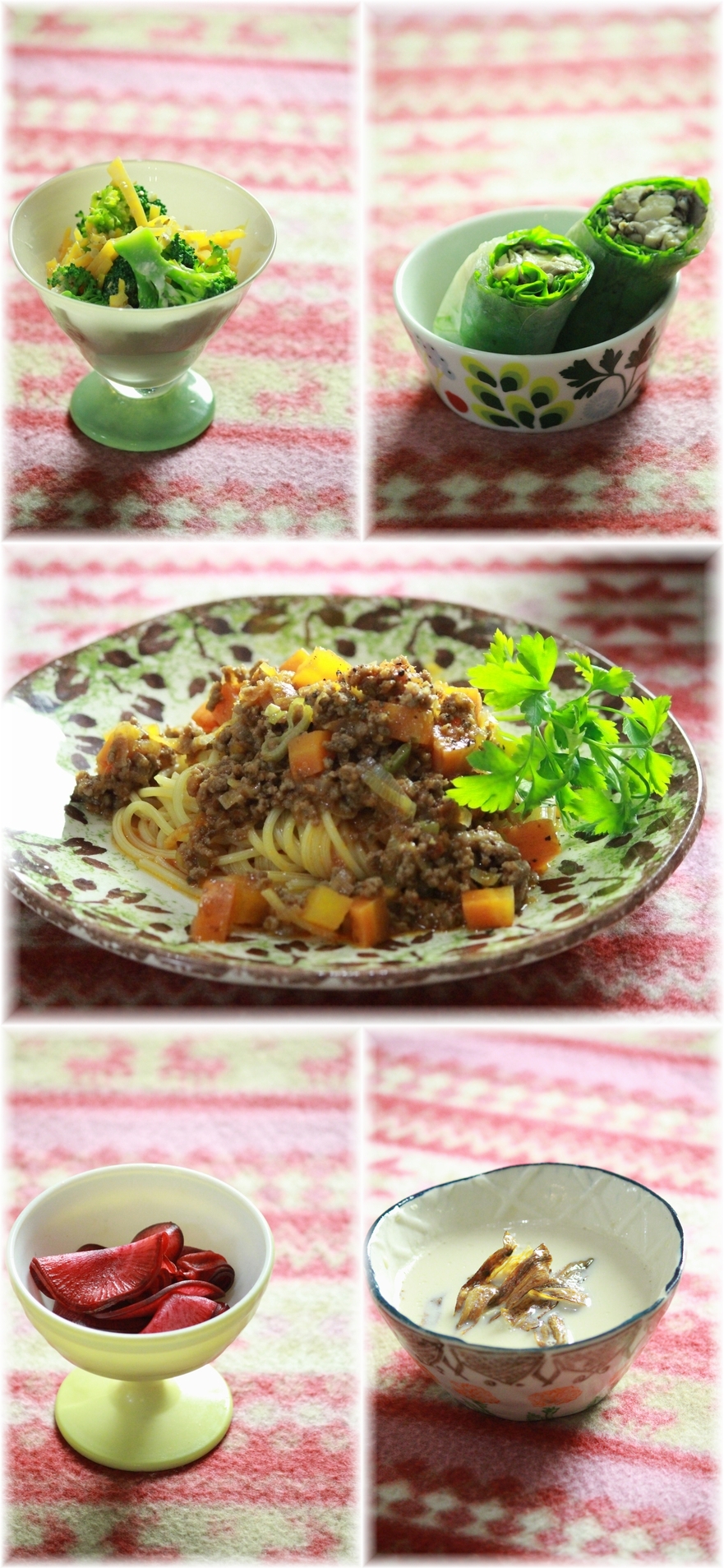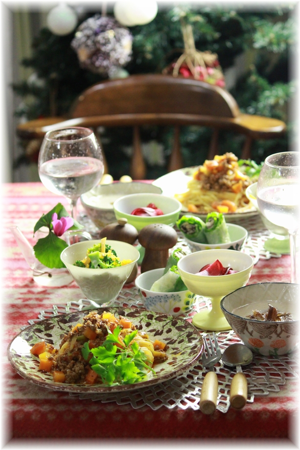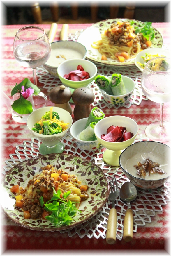 和洋ミートソースパスタ。 と 献立。