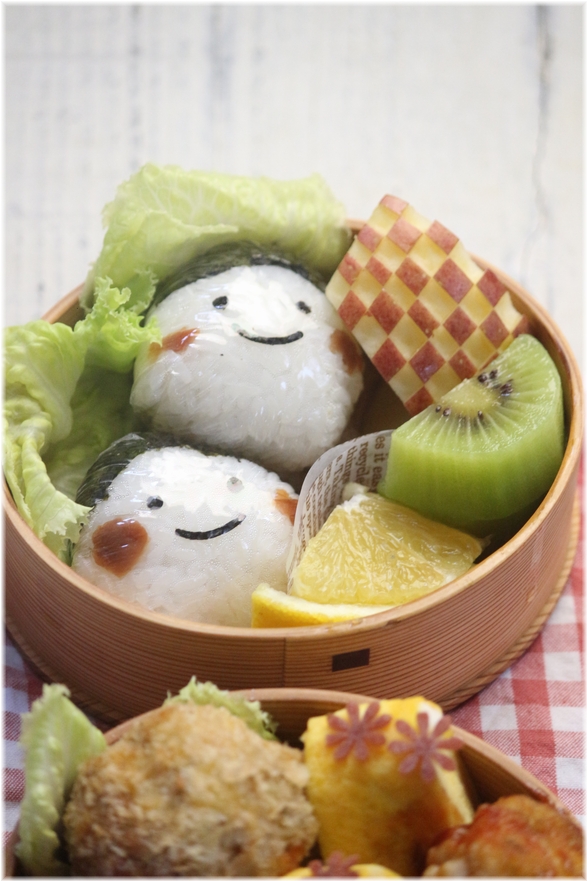 梅干しおにぎりと くだもの。