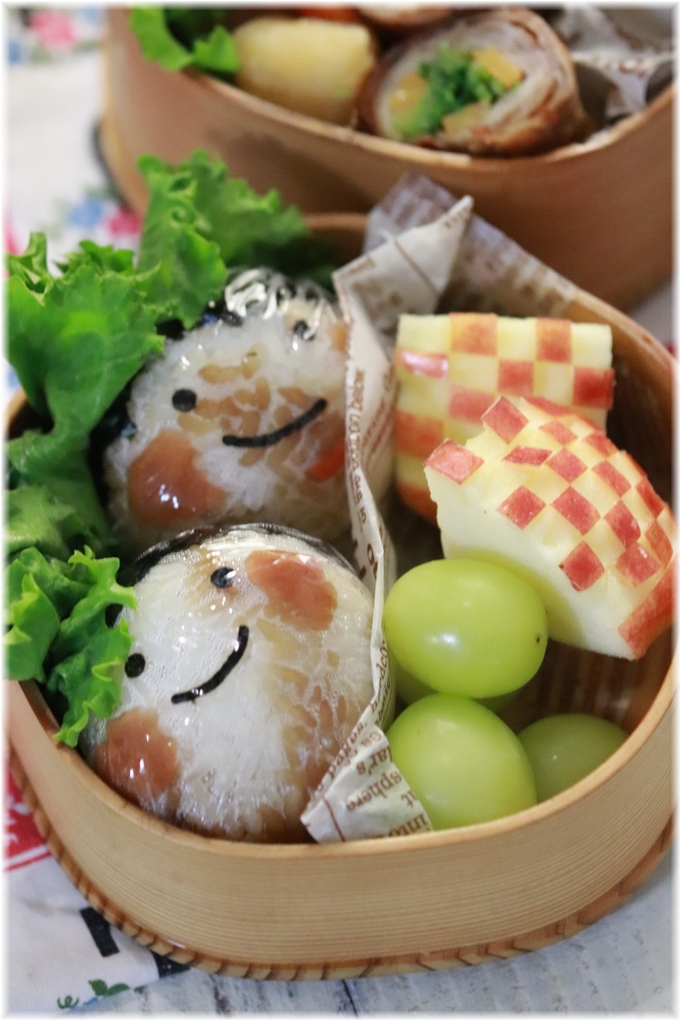 ちょっと日に焼けた顔のおにぎりです。