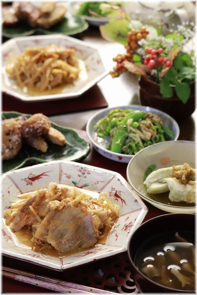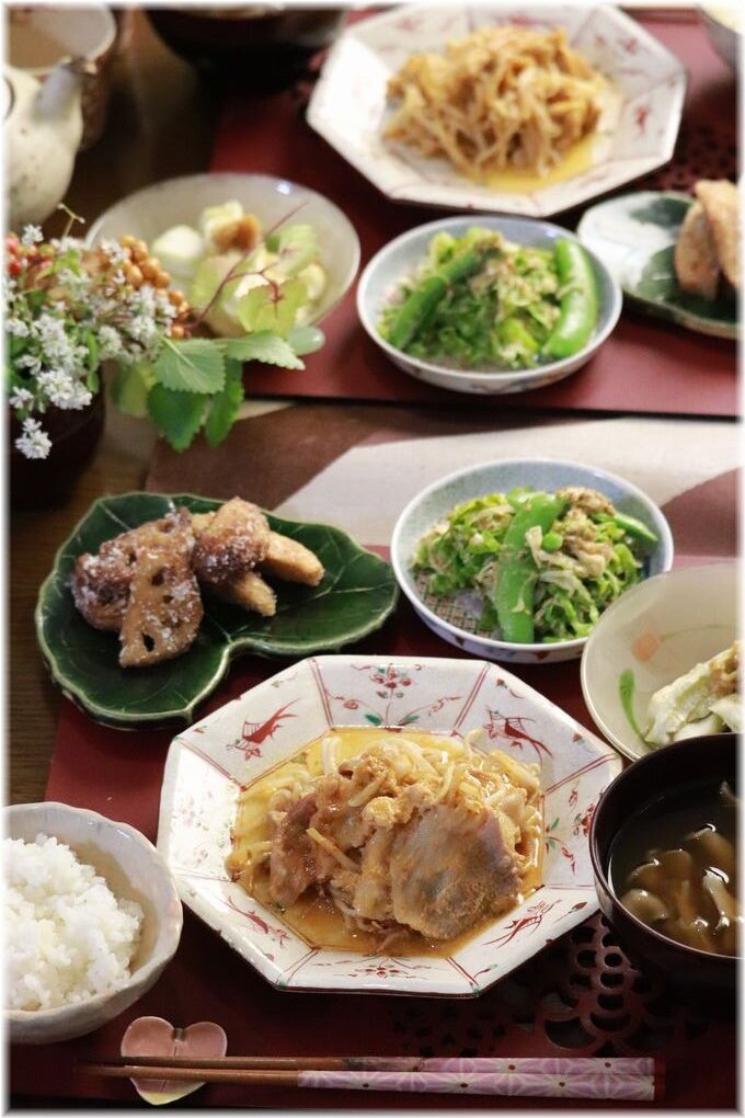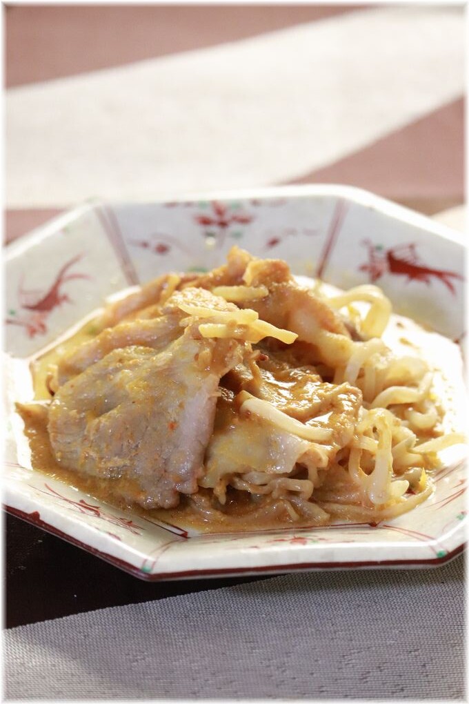 【レシピ】レンチンで速攻☆もやしと豚肉の味噌生姜蒸し。と 献立。と お夜食。