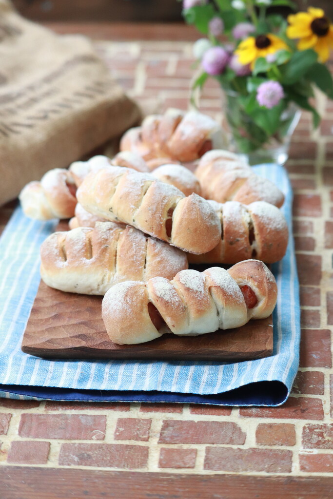 フランスパンみたいな生地でウインナーを巻きました。