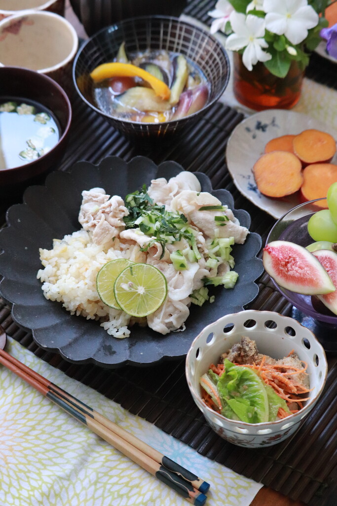【レシピ】スイッチ押すだけ。炊き込み生姜ごはん。と 献立。と 贅沢な目の前。