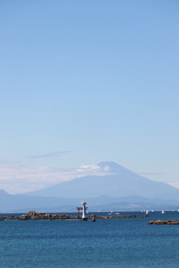 ばっちり見えました。雪の帽子のない真っ黒富士山