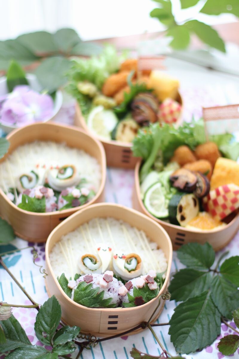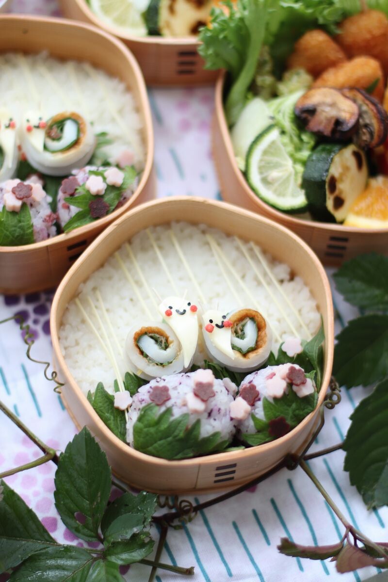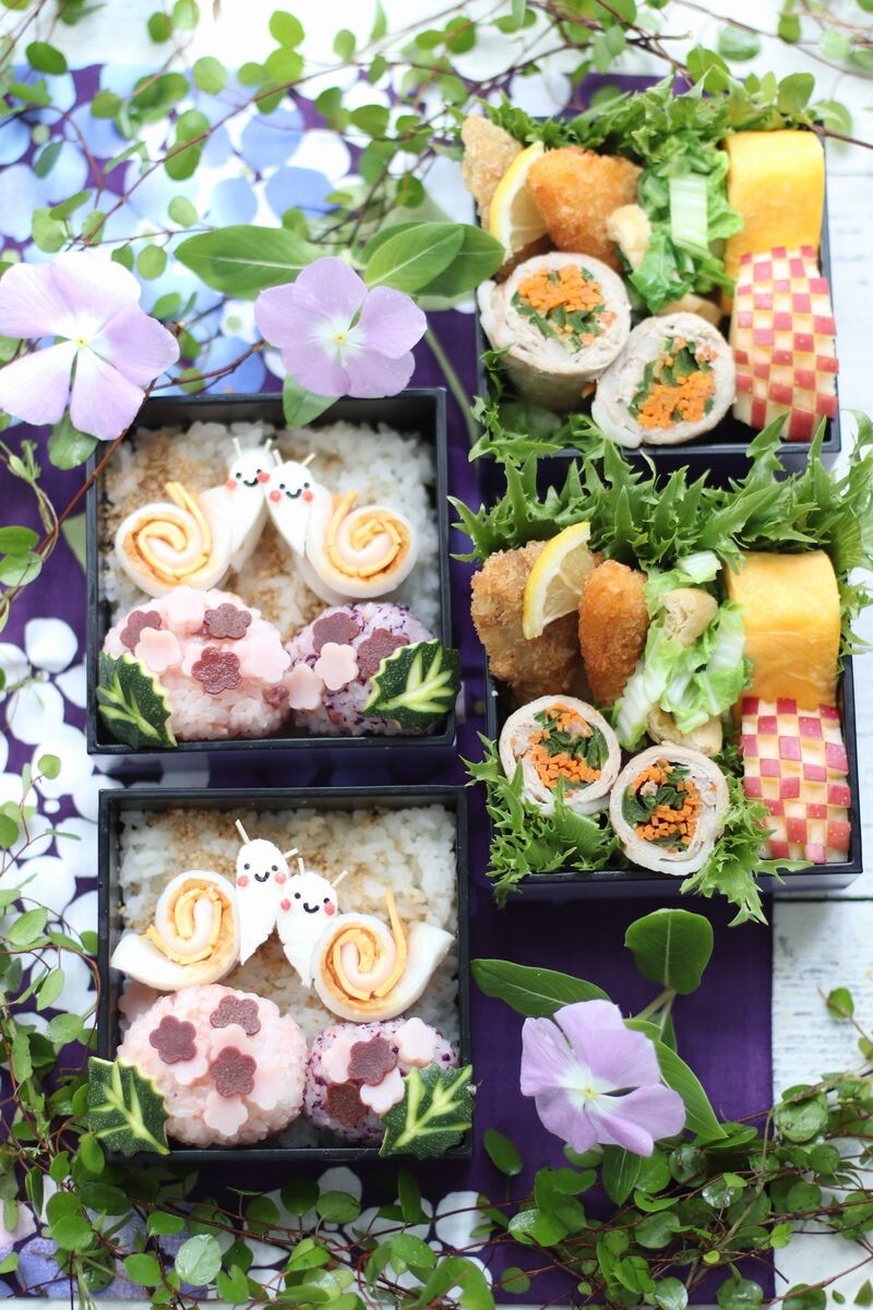 【お弁当】まだまだ続くよ かたつむりと紫陽花弁当の1週間。と 富士山を挟んで。