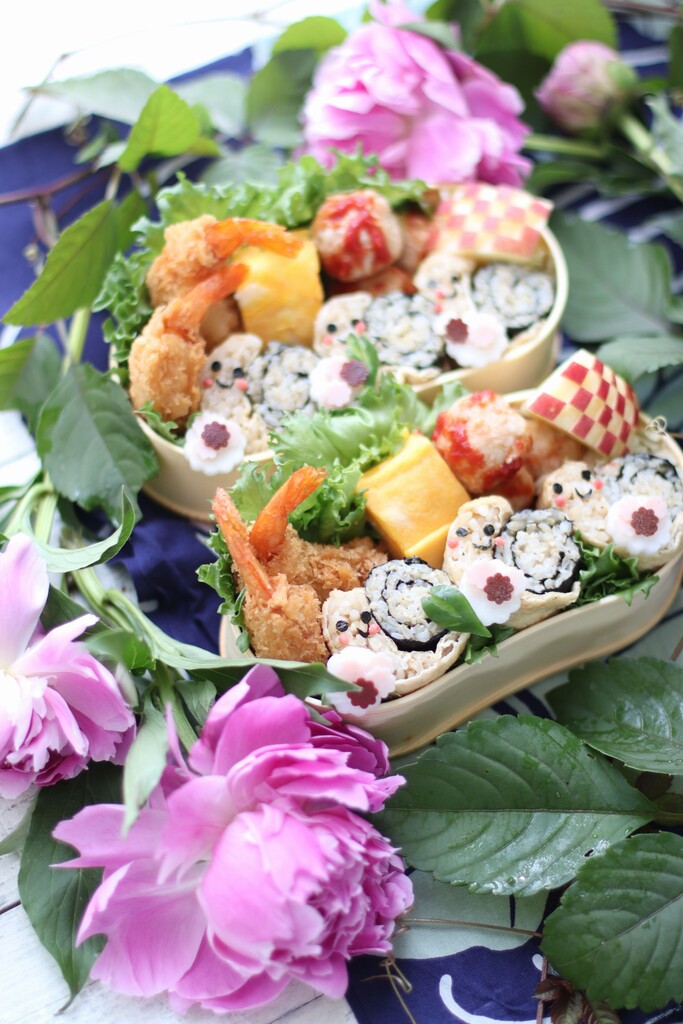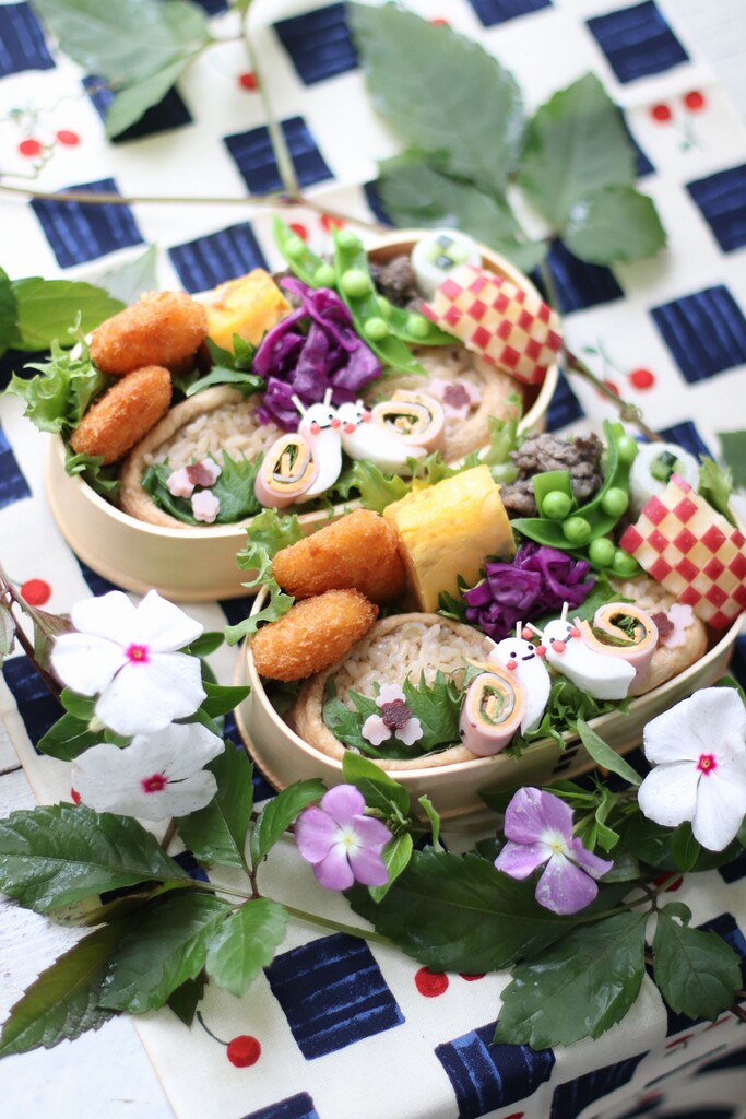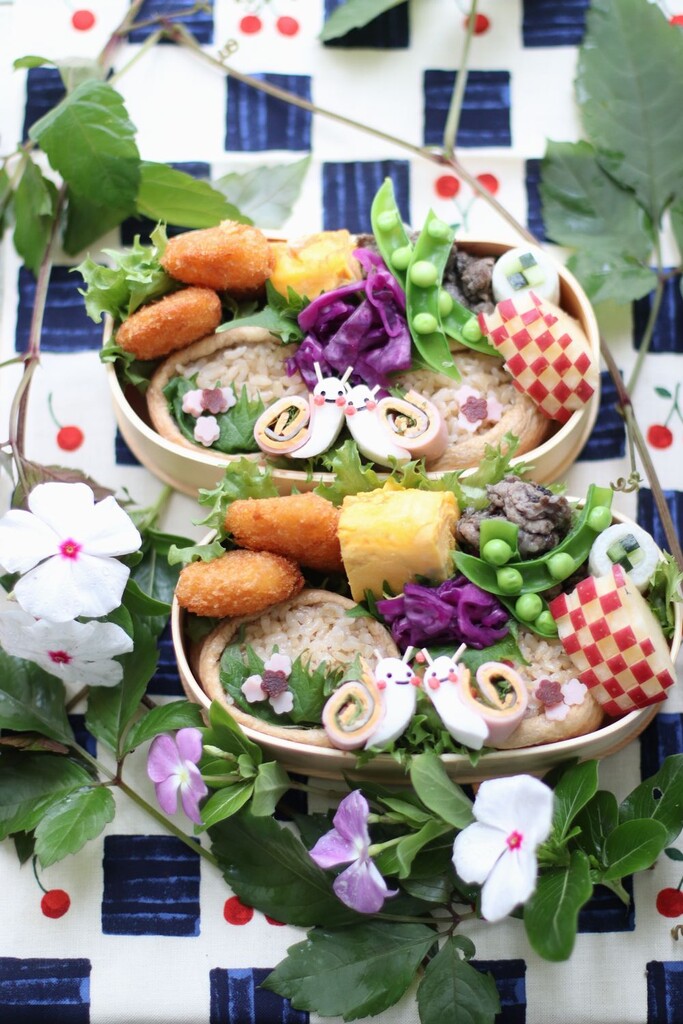 おいなりさんの紫陽花とかたつむりのお弁当