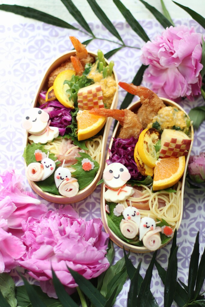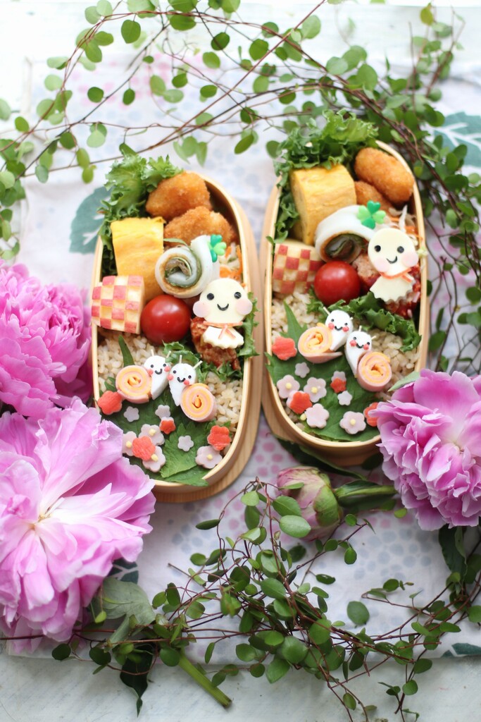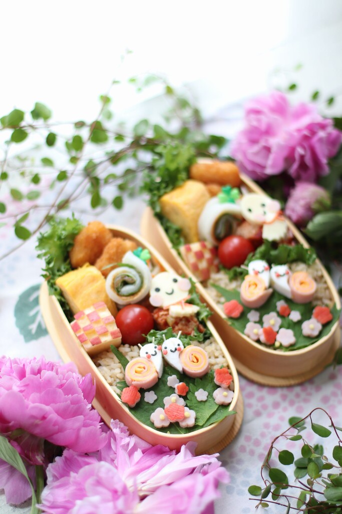 仲良しかたつむりと てるてる坊主のお弁当