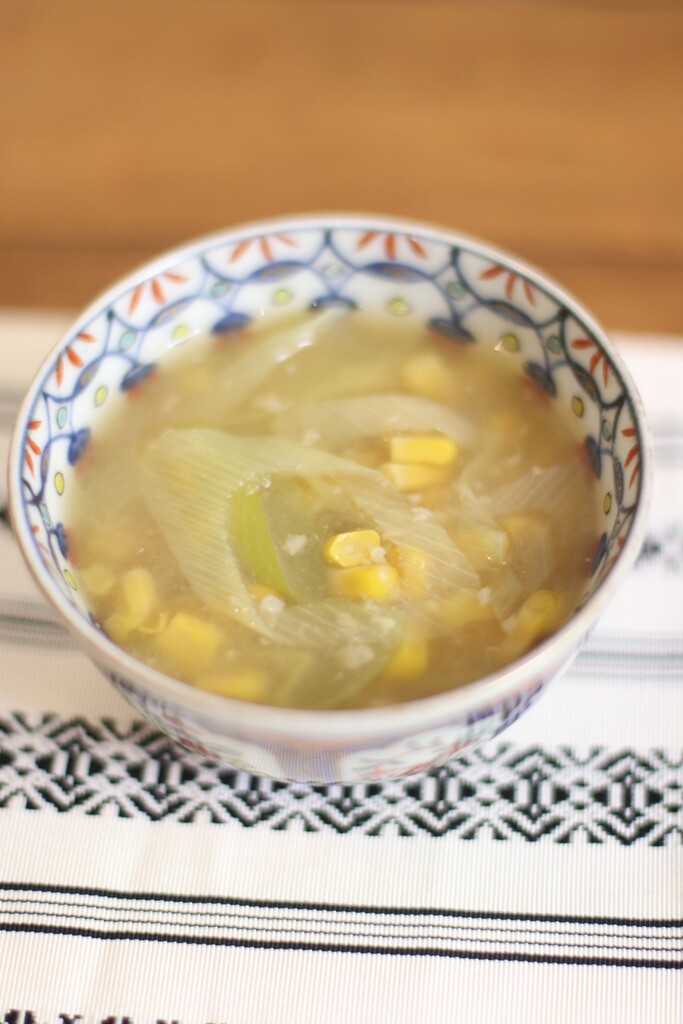 長ネギとコーンの味噌スープ(ちょっとラーメンっぽい感じ)