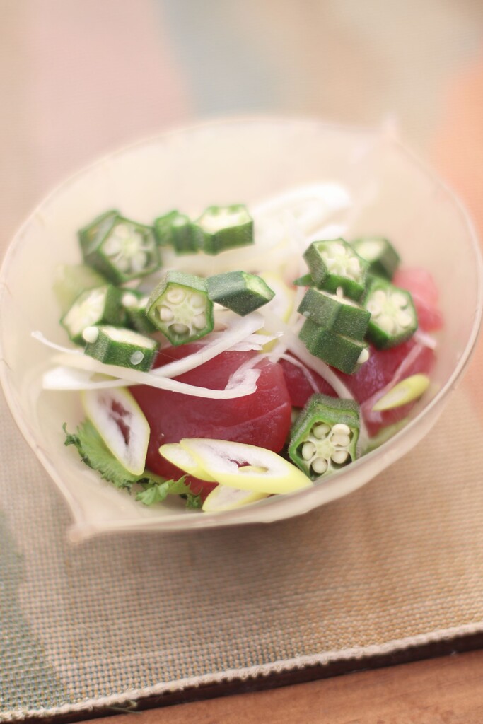 お好みで大葉の千切りと胡麻をあわせてどうぞ。