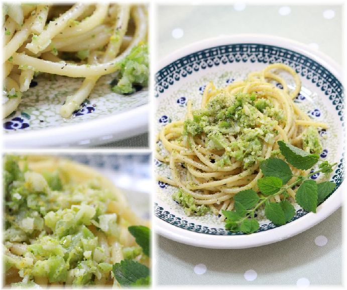 1)ブロッコリーは小房にわけ、茎も1センチ角に刻み