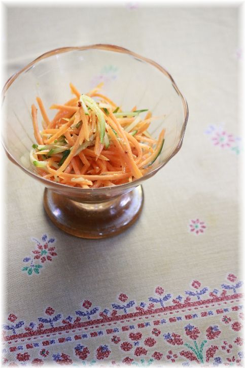 キュウリと人参のマスタード バジルオイルサラダ。