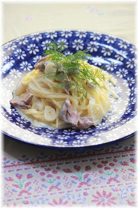 残っていた自家製ツナでパスタ。