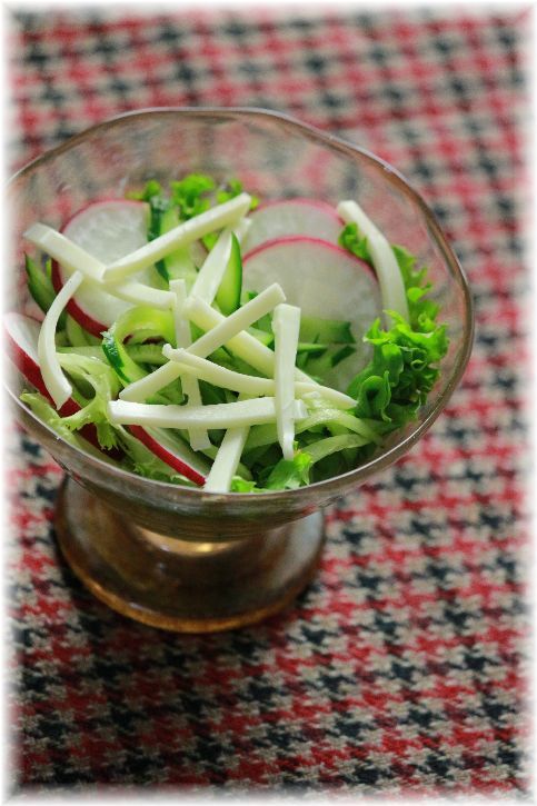 レタス、ラディッシュ、チーズのサラダ。