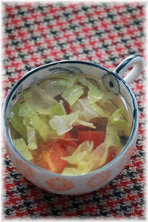 キャベツとミニトマトのスープ。