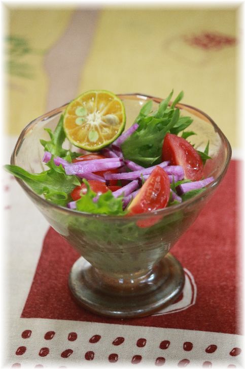 レタス・カラフル大根・ミニトマトのサラダ。
