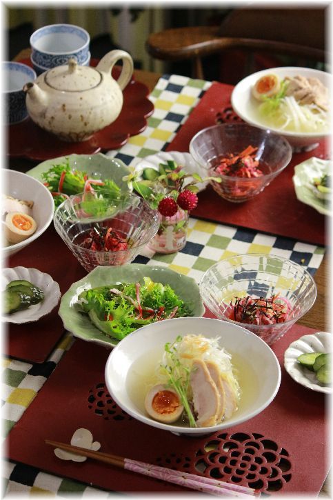 紅い大根とキュウリと人参のナムル。