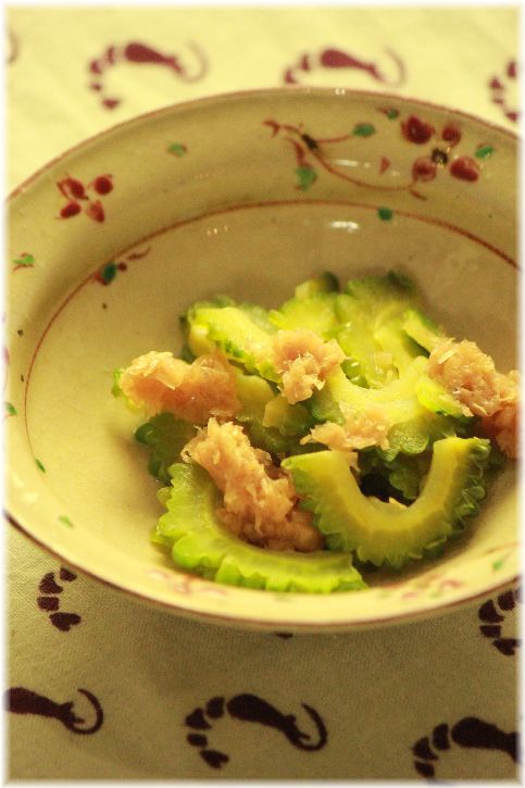 ゴーヤの出し殻(かつおだしの出し殻)チャンプルー。→☆