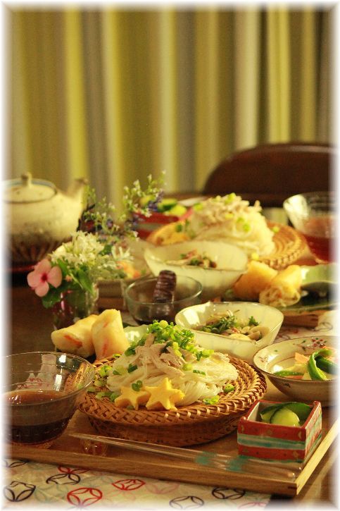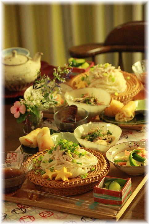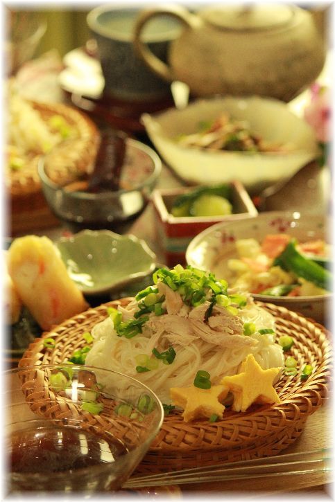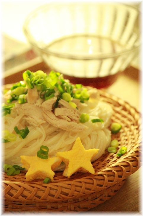 鶏スープの 素麺。と 七夕の献立。(鶏スープ:ささみ&煮干し編)