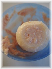 *ぐりぐり押し付けると、穴の中にたらこチーズが逃げて、