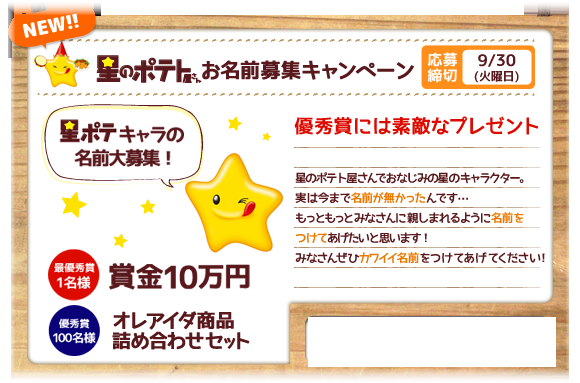 星のポテトちゃんに、お名前つけちゃおう!キャンペーン→☆