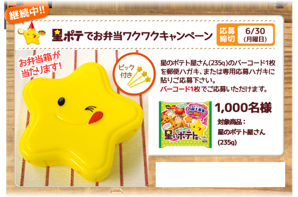 星のポテトのかわいいお弁当箱プレゼントキャンペーンです。→☆
