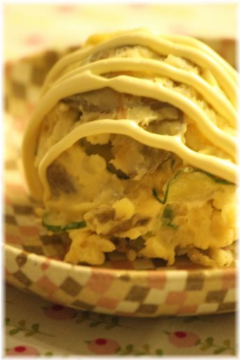 ポテトサラダをアイスクリームスクープで ぽこん と 盛りました。
