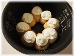 丸めなおして、炊飯器の底面に並べて