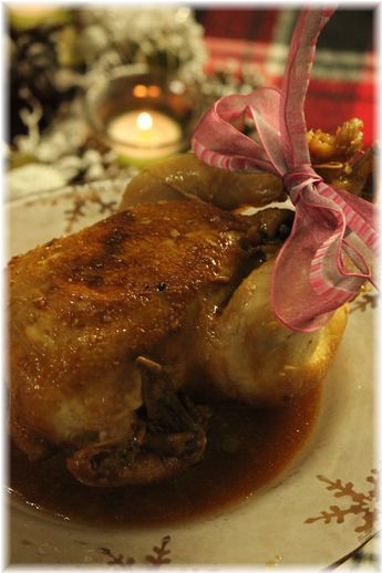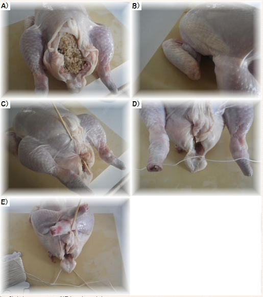 3)詰めて鶏肉を縛る。(ちょっとグロテスクです・・・許してくれる方のみどうぞ。