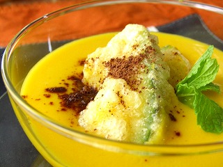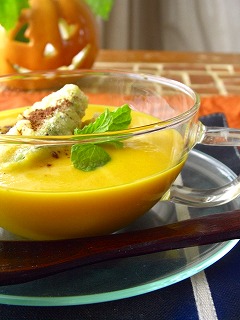 娘の大好きなかぼちゃのスープ。冷たくしてデザートにしました。